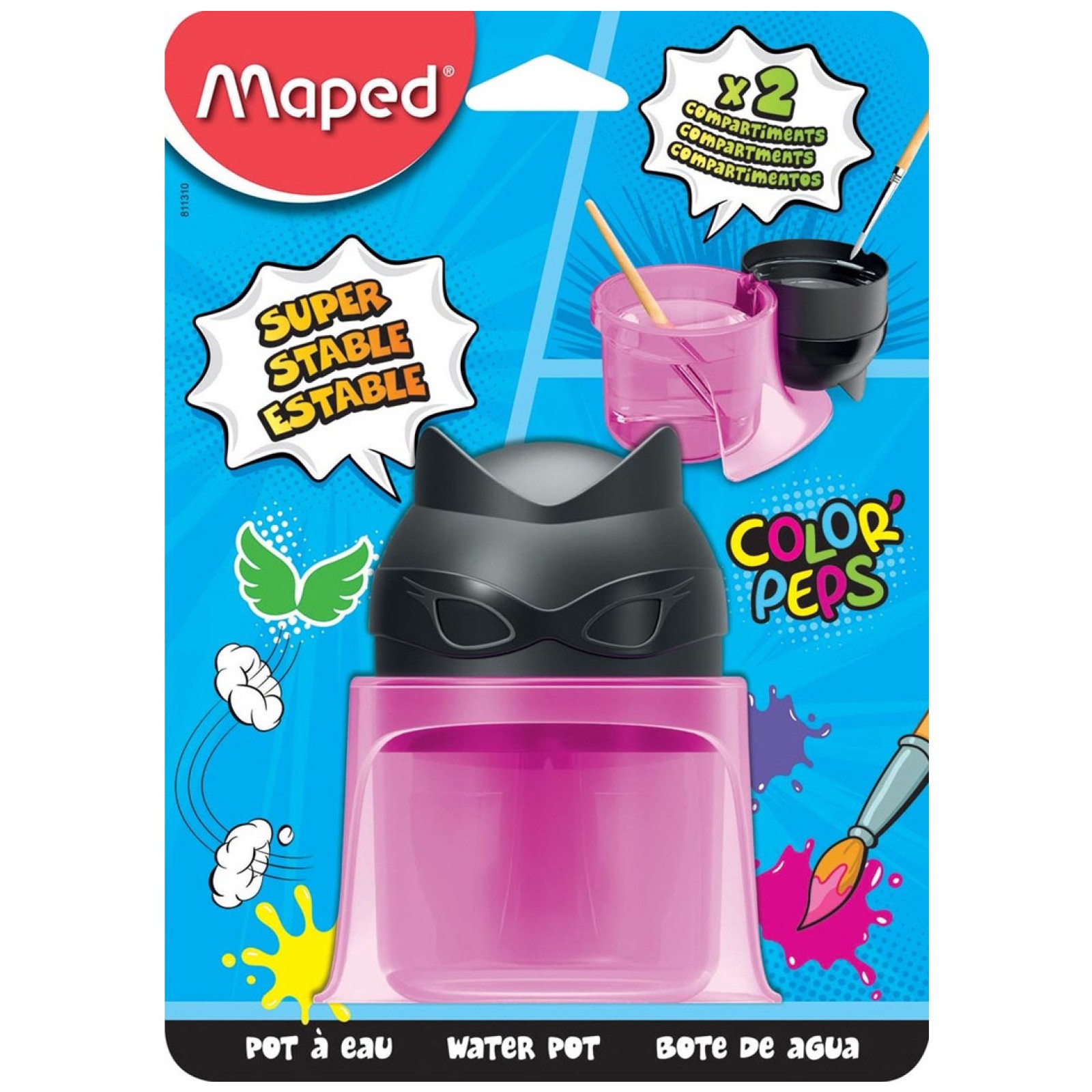 Maped Boya Su Kabı Özellikleri ve Açıklamaları Maped Boya Su Kabı 811310 Fırça tutucu ve ekstrüzyon sistemi ile kararlı su haznesi. Temizlemesi kolaydır. 12 tüp yapıştırıcı boya için depolama alanı. Çeşitli renklerde: mavi ve pembe.